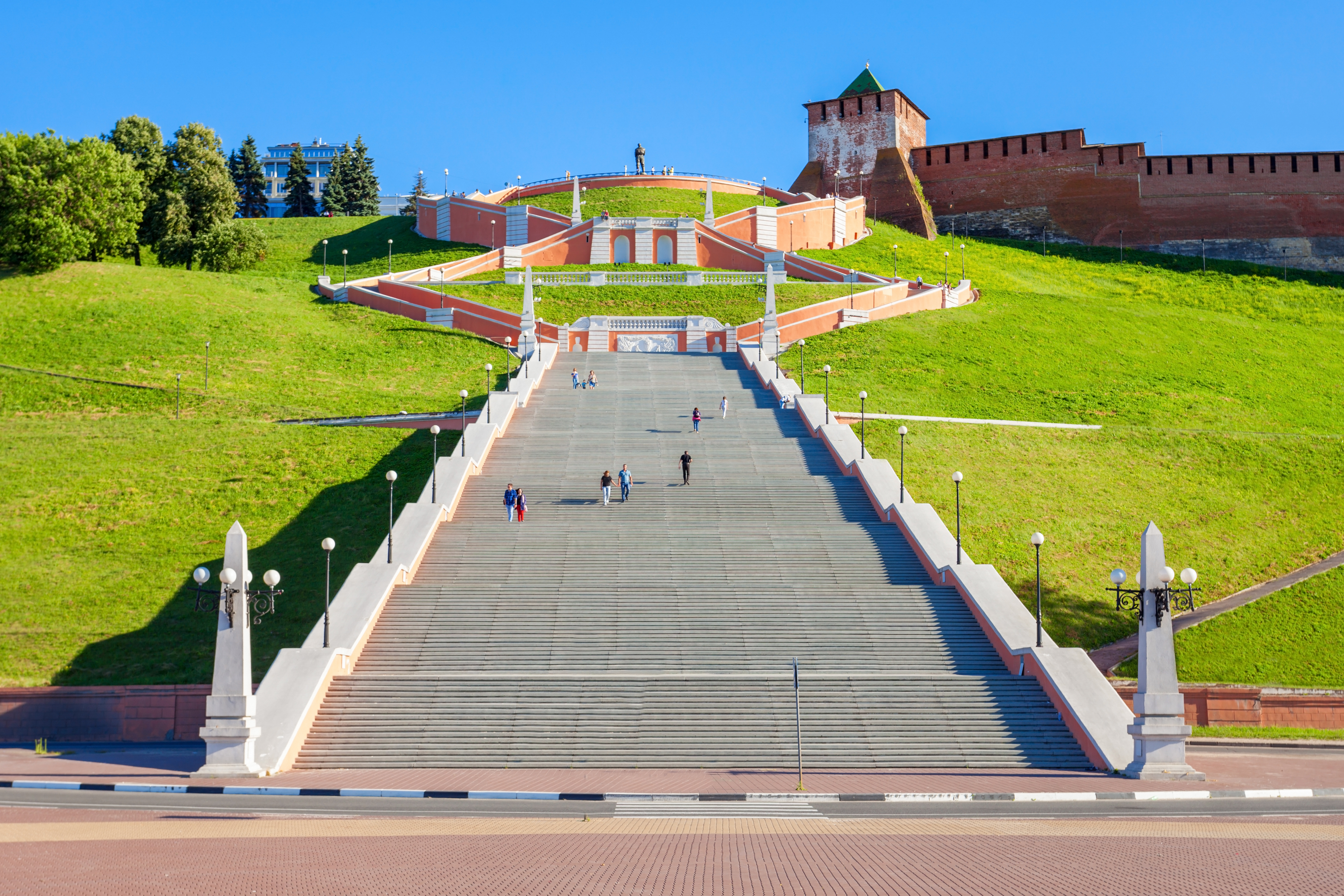 Символом Александровского сада считается Чкаловская лестница. Ее построили еще в 1949 году для соединения набережных. Сейчас это место популярно среди жителей и гостей Нижнего Новгорода как смотровая площадка. В вечернее время на лестнице загорается подсветка.